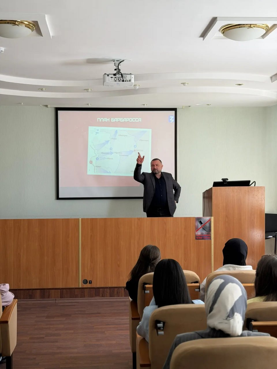 В рамках памятного дня в академии состоялась просветительская лекция, направленная на формирование у студентов глубокого понимания трагических событий военных лет и их значения для современности. Лектором выступил Шамиль Хубиев, кандидат педагогических наук, активно участвующий в просветительской деятельности в регионе .