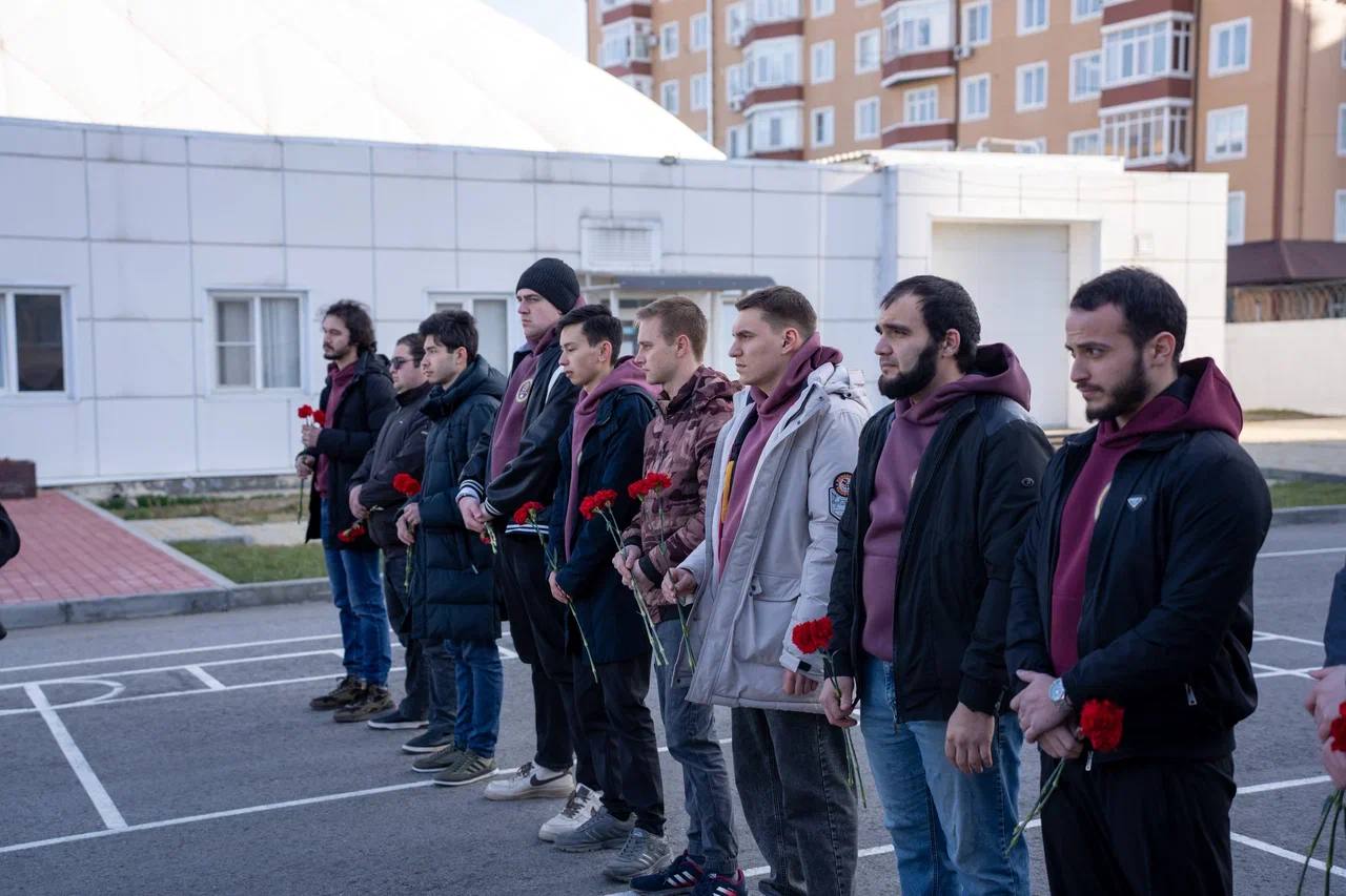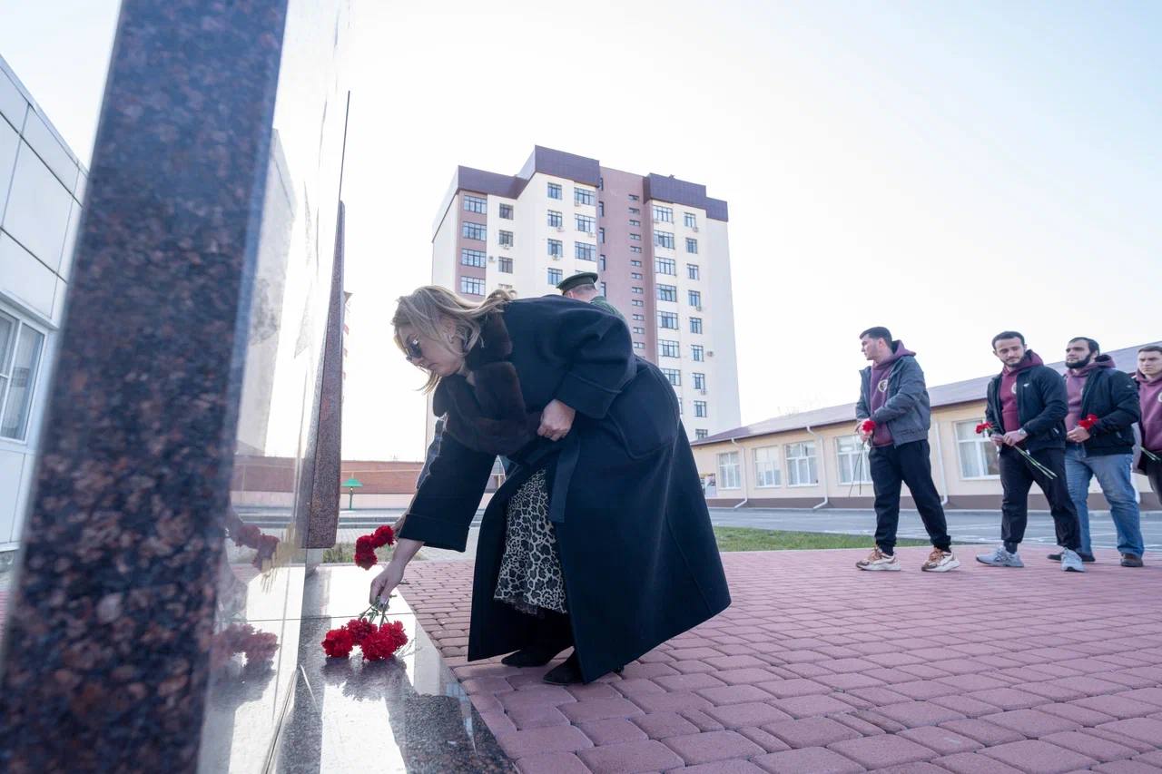 По сложившейся традиции перед отправкой студентов состоялось возложение цветов к мемориалу погибшим в зоне СВО студентам и выпускникам академии, установленному на площадке Военного учебного центра СКГА. Руководство академии совместно с обучающимися почтили память наших ребят, отдавших жизнь за Родину, и пожелали будущим врачам сил и мужества в их благородной миссии.