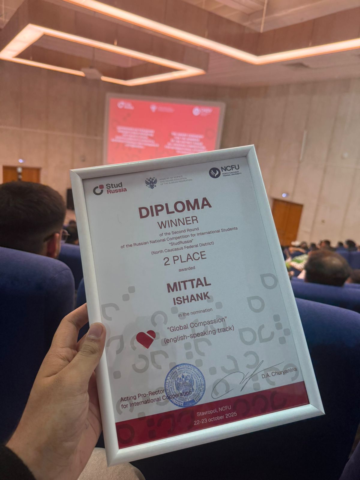 Сердечно поздравляем иностранных студентов Медицинского института СКГА, продемонстрировавших выдающиеся результаты на всероссийском конкурсе StudRussia! В условиях жесткой конкуренции, где участвовали 280 студентов из 40 вузов в 6 номинациях, наши ребята смогли завоевать ТРИ призовых места в главной номинации "Будущее науки". Мы искренне гордимся достижениями наших талантливых студентов!
