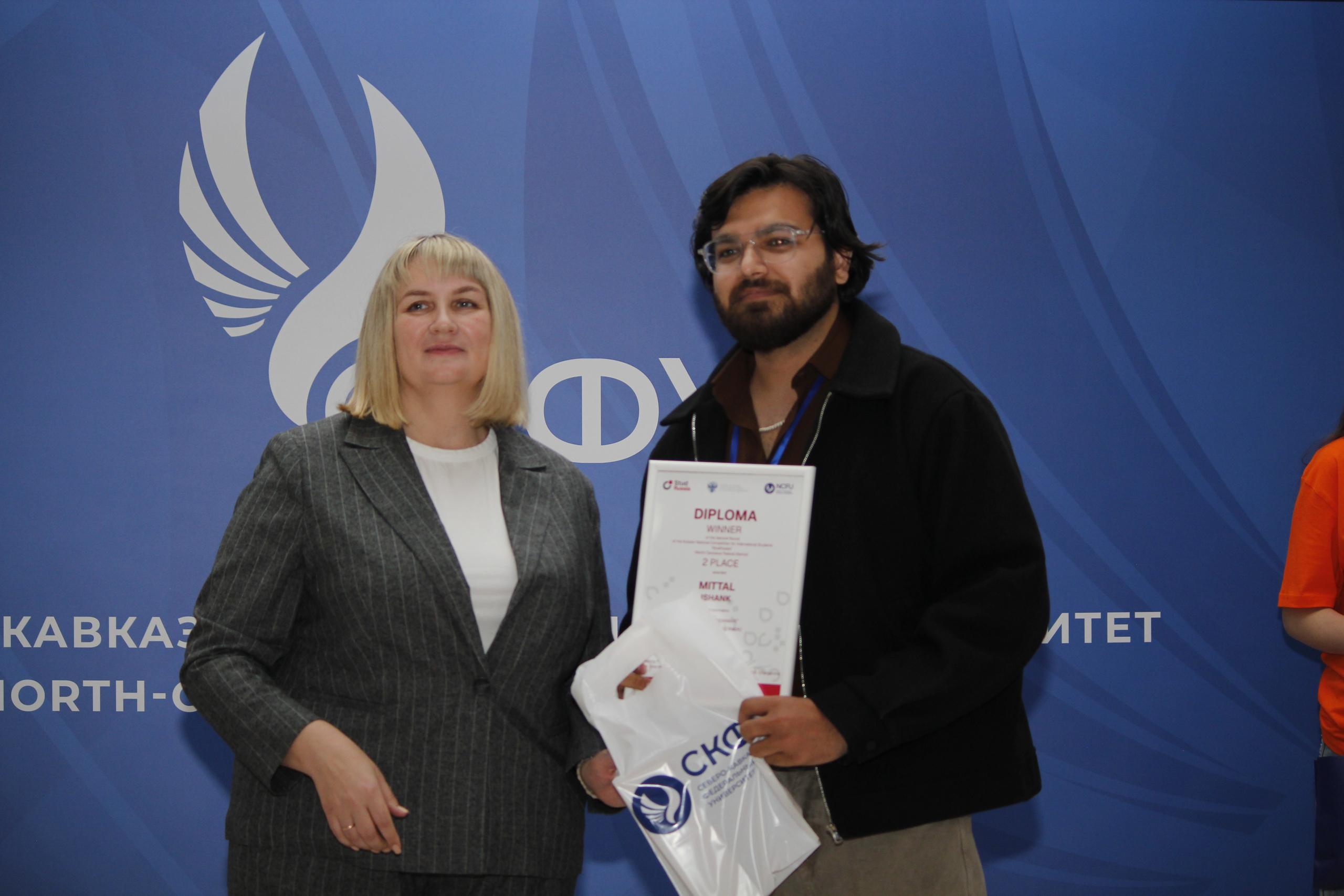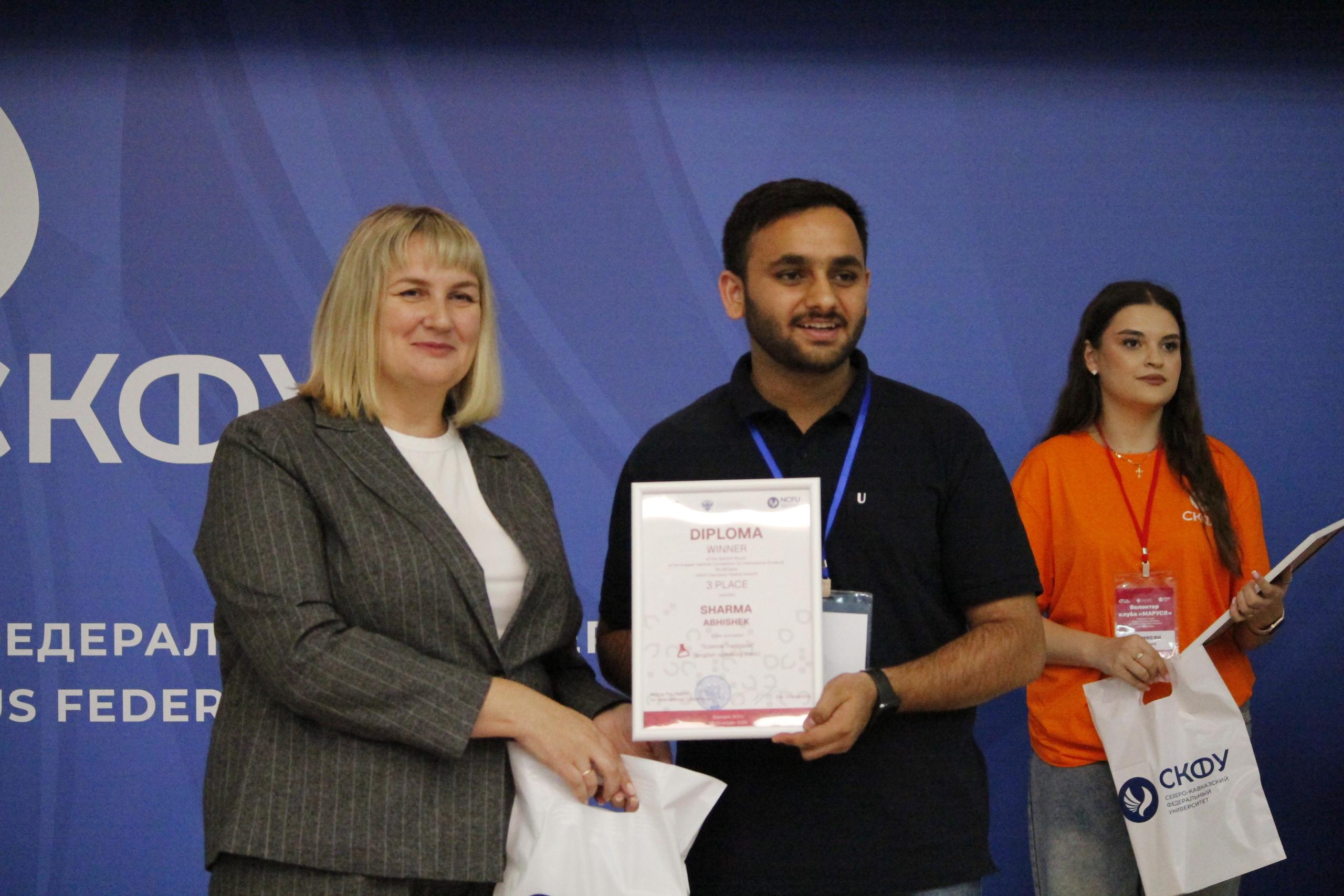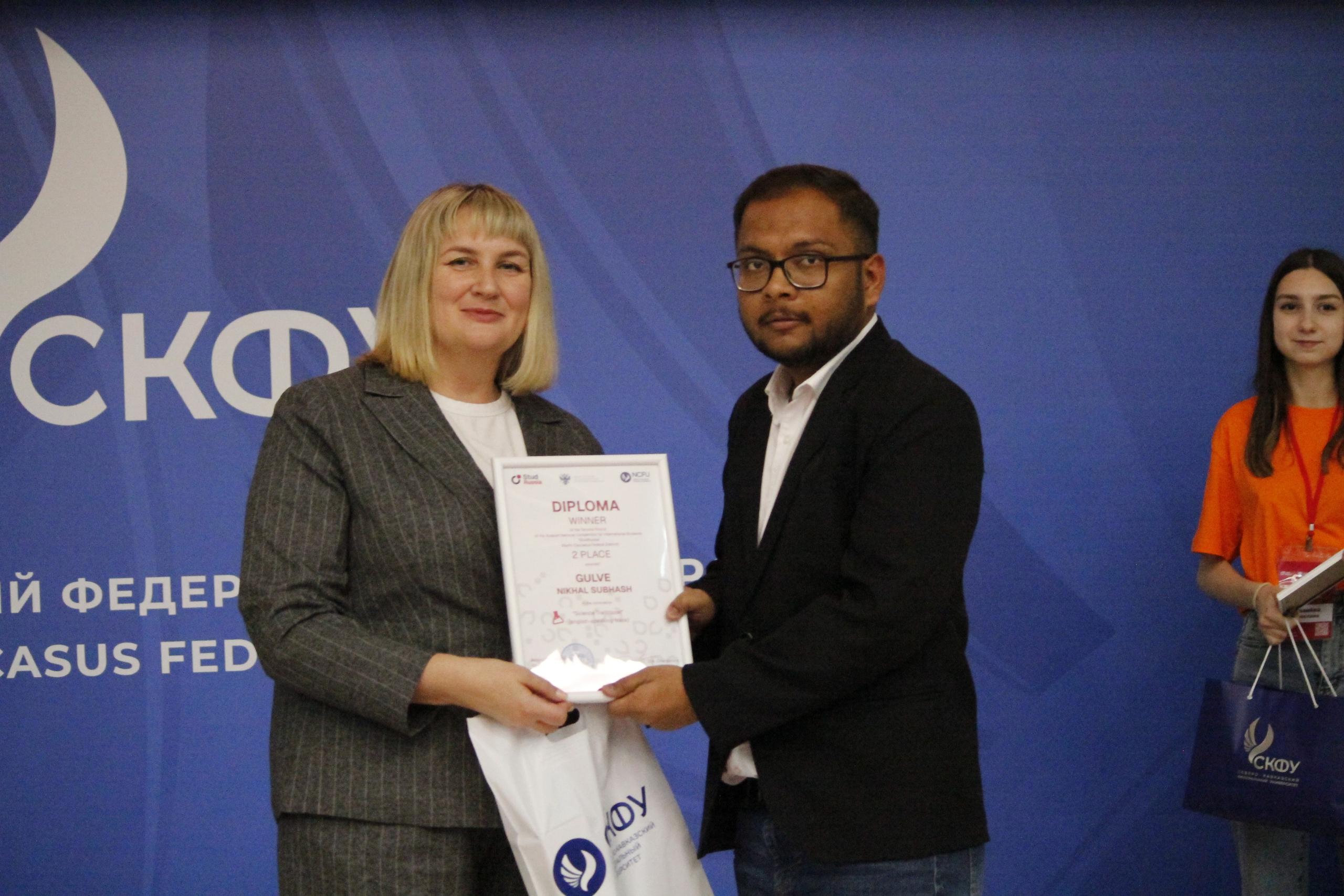 21-24 октября 2025г. студенты факультета иностранных обучающихся Медицинского института СКГА под руководством декана факультета иностранных обучающихся, доцента кафедры внутренних болезней, к.м.н. Джанибековой Асият Рамазановны приняли активное участие в окружном этапе Всероссийского конкурса для иностранных обучающихся «СтудRussia» на базе ФГАОУ ВО «Северо-Кавказский федеральный университет» г. Ставрополь. В Всероссийском конкурсе «СтудRussia» в 6 номинациях приняли участие 280 иностранных студентов из 40 ведущих ВУЗов ЮФО и СКФО (Республика Крым, Ростовская область, Волгоградская область, Краснодарский край, Астраханская область, Ставропольский край, Республика Дагестан, Кабардино-балкарская республика, Чеченская республика, Республика Северная Осетия-Алания, Республика Калмыкия и др.)По итогам данного конкурса в номинации «Будущее науки» наши иностранные студенты награждены II призовом местом (Никхил Гульве), а также III призовое место (Абишек Шарма); в номинации «Добро без границ» награжден II призовом местом (Миттал Ишанк).