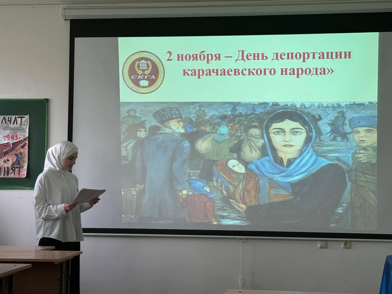 В стенах Северо-Кавказской государственной академии прошло глубоко пронзительное тематическое мероприятие, посвященное одной из самых скорбных дат в истории нашего региона — Дню депортации карачаевского народа. Эта трагедия, произошедшая 2 ноября 1943 года, навсегда осталась в памяти поколений как пример невероятной стойкости и трагизма.