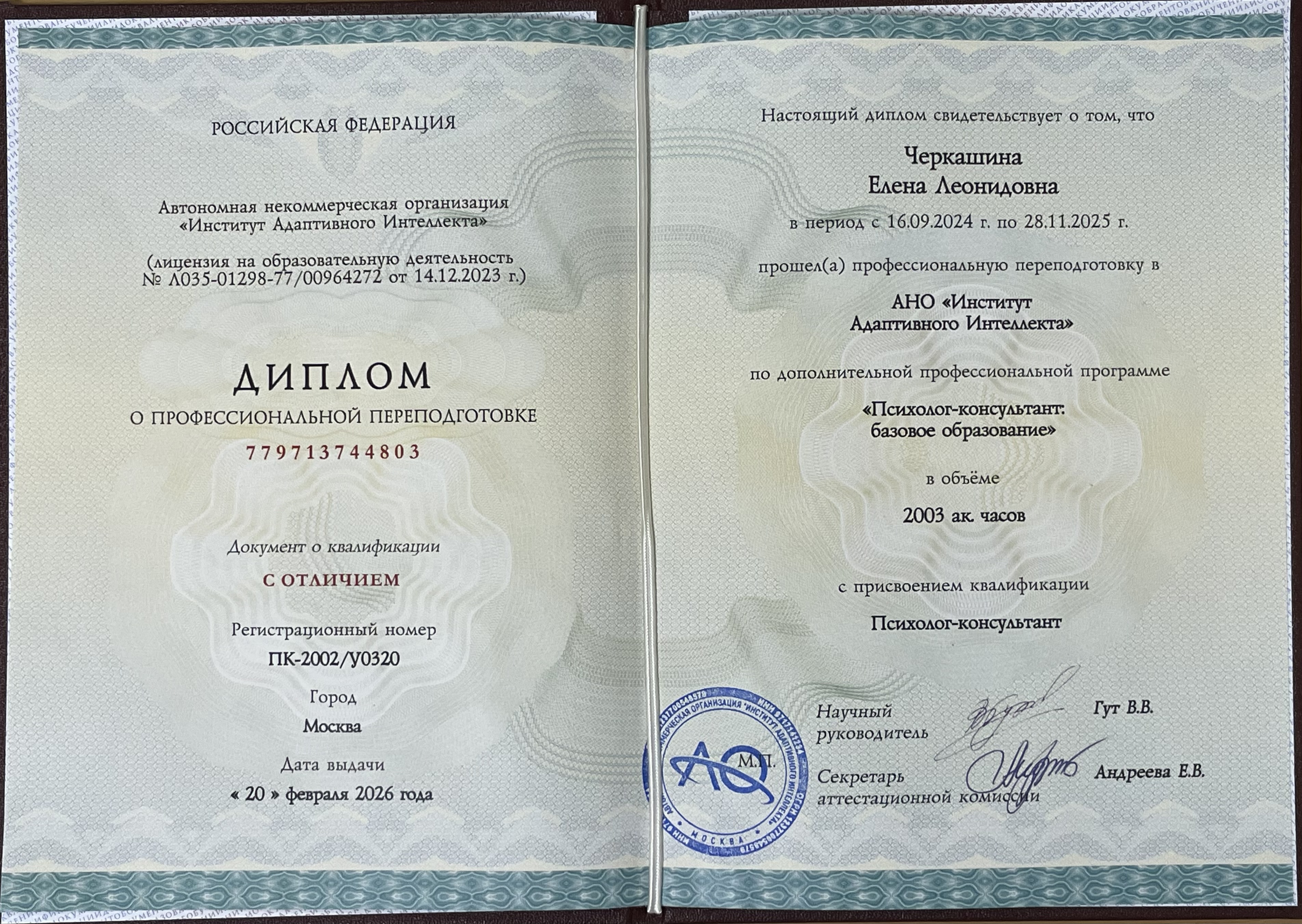Зав. отделением СПК СКГА Черкашина Елена Леонидовна, получив дополнительную профессиональную квалификацию в результате переподготовки по программе «Психолог-консультант: базовое образование» в Московском центре психологического образования на базе АНО «Институт Адаптивного Интеллекта», готова поделиться новыми знаниями и практиками для поддержки профессионального и эмоционального здоровья педагогов.