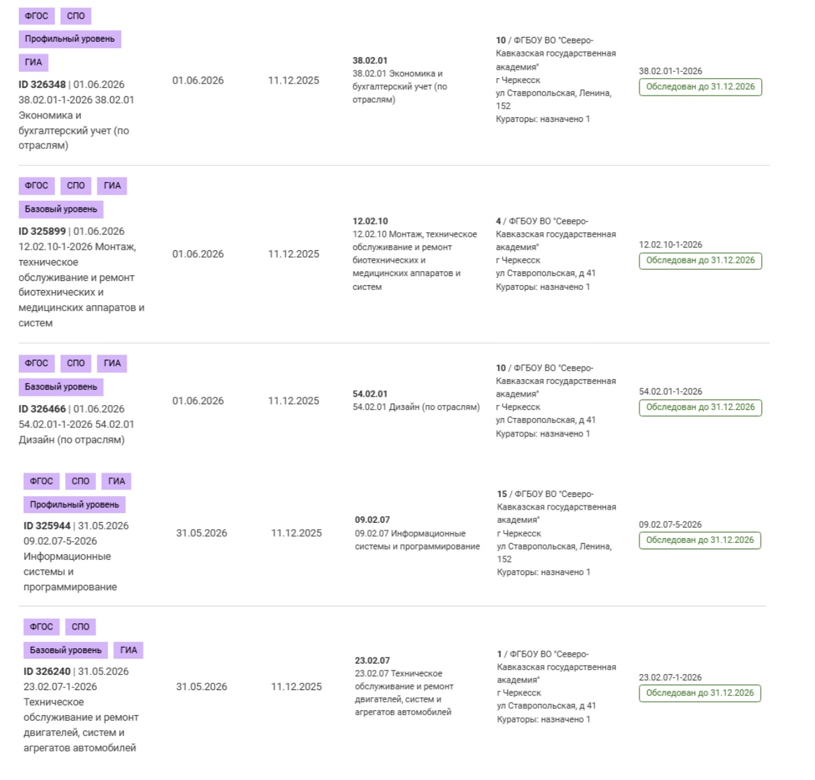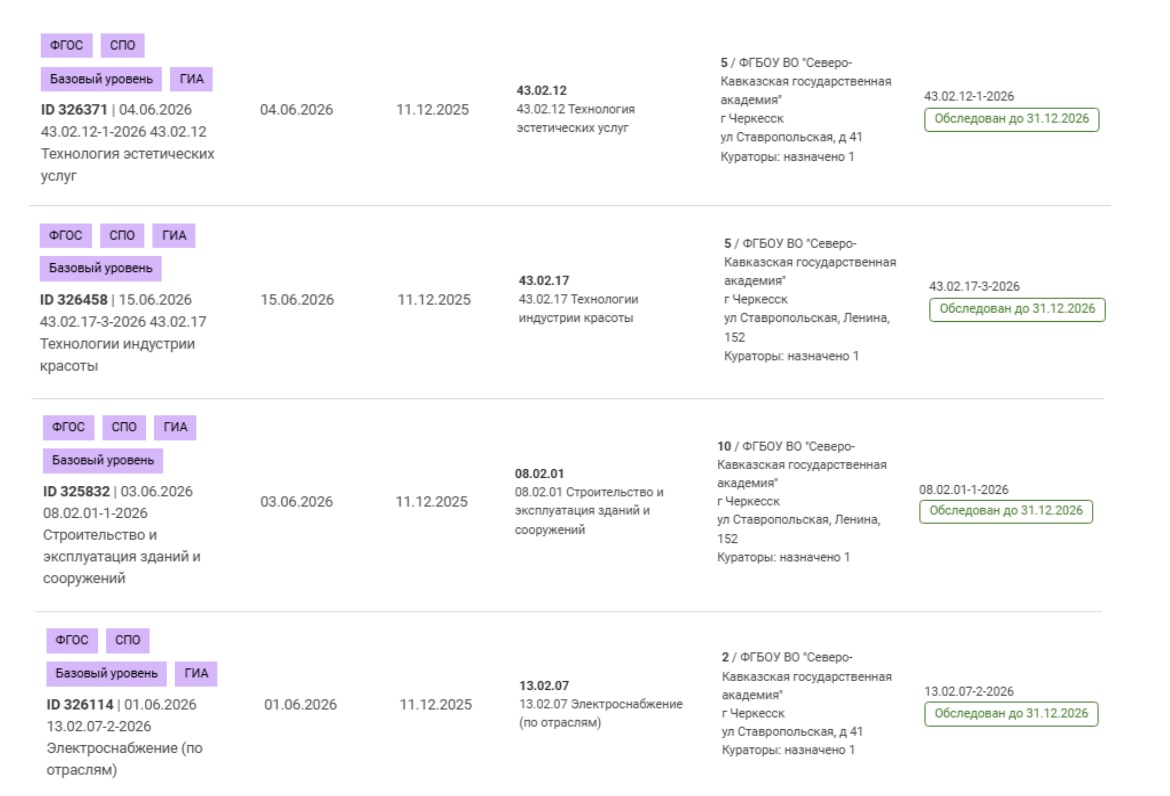 Итогом большой подготовительной работы стало согласование оснащения региональным и федеральным операторами, и успешное прохождение процедуры аккредитации ЦПДЭ по следующим специальностям: