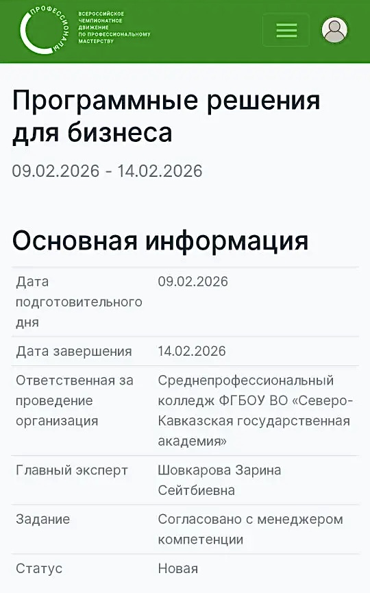 Программа проведения Регионального этапа Чемпионата по профессиональному мастерству «Профессионалы» - 2026 в Карачаево-Черкесской Республике по компетенции «Программные решения для бизнеса»